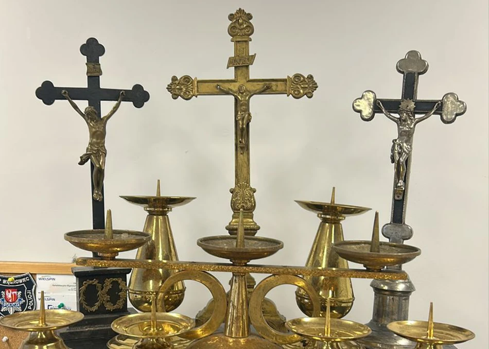 Wągrowieccy kryminalni zatrzymali 34-letniego mieszkańca miasta podejrzanego o kradzież dewocjonaliów z kościoła farnego parafii pw. Świętego Jakuba Apostoła w Wągrowcu. Jak ustalili policjanci, mężczyzna wyniósł z wnętrza świątyni elementy wyposażenia bocznych ołtarzy, a następnie zaniósł je do punktu skupu złomu.