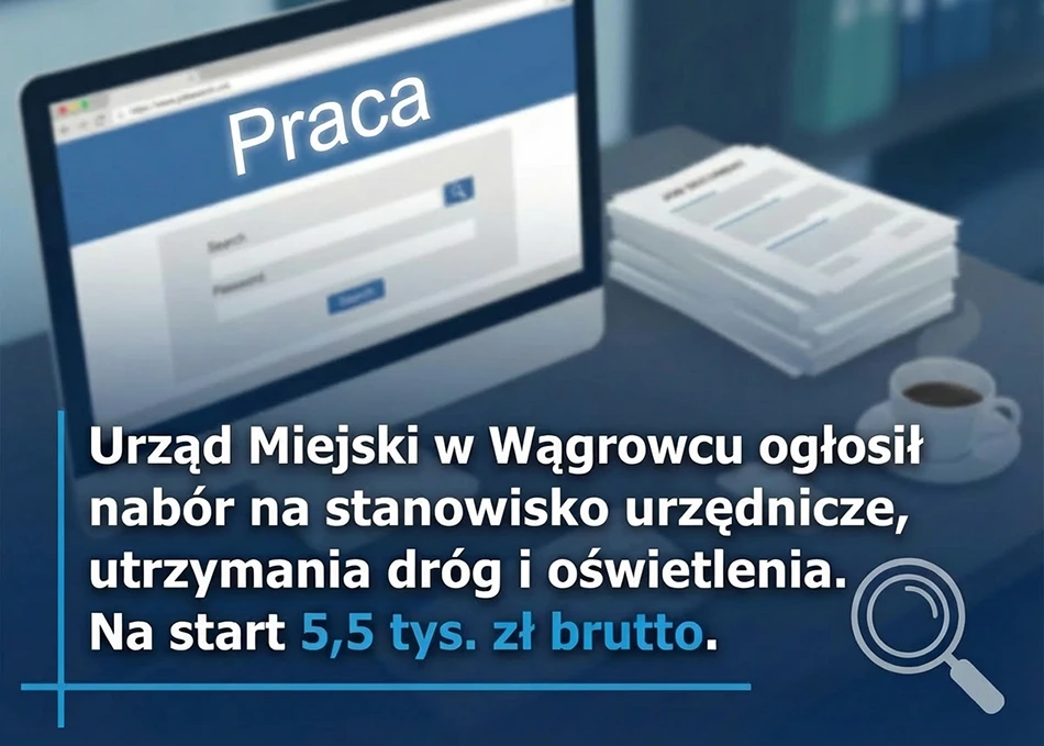 Urząd Miejski w Wągrowcu ogłosił nabór na stanowisko urzędnicze ds. inwestycji, utrzymania dróg i oświetlenia. Na start 5,5 tys. zł brutto.