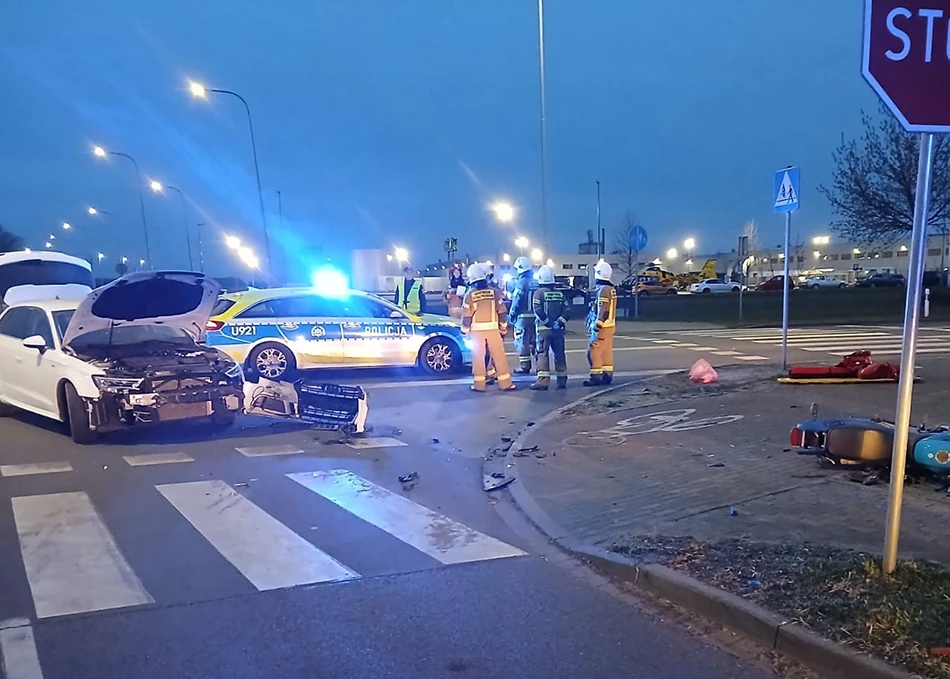 Do trzeciego, najpoważniejszego zdarzenia doszło w Wągrowcu, na skrzyżowaniu ulic Wierzbowej i 11 Listopada. Tam ponownie zderzyły się motocykl i samochód osobowy. Motocyklista był przytomny, jednak odniósł ciężkie obrażenia. Ratownicy stwierdzili u niego otwarte złamanie lewej nogi oraz uraz barku. Strażacy zabezpieczyli miejsce wypadku, udzielili kwalifikowanej pierwszej pomocy i przekazali poszkodowanego zespołowi ratownictwa medycznego. Ze względu na stan rannego podjęto decyzję o transporcie do szpitala w Poznaniu z udziałem Lotniczego Pogotowia Ratunkowego.