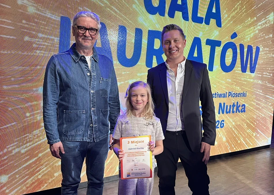 Gabriela Sturma, uczennica klasy pierwszej Szkoły Podstawowej nr 1 w Wągrowcu, została laureatką IX Międzynarodowego Festiwalu Piosenki „Dolnośląska Nutka 2026”. W konkursie zajęła 3. miejsce, reprezentując miasto Wągrowiec na prestiżowym wydarzeniu muzycznym.