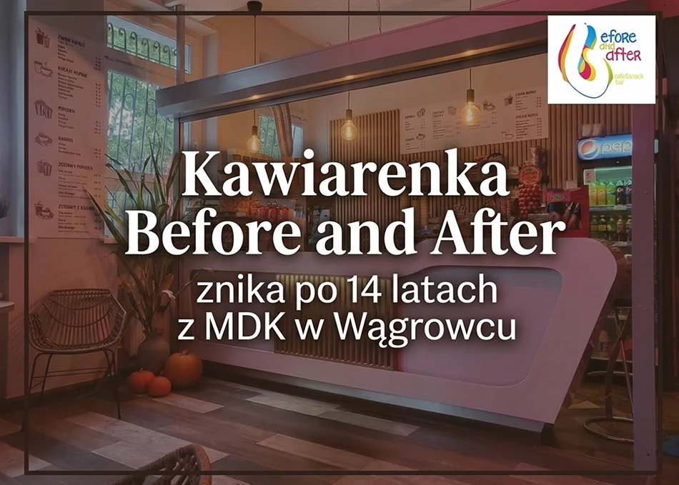 Po 14 latach działalności kawiarenka Before and After zniknie z Miejskiego Domu Kultury w Wągrowcu. Umowa z dotychczasowym najemcą wygasa i — jak wynika z decyzji dyrekcji placówki — nie zostanie przedłużona.