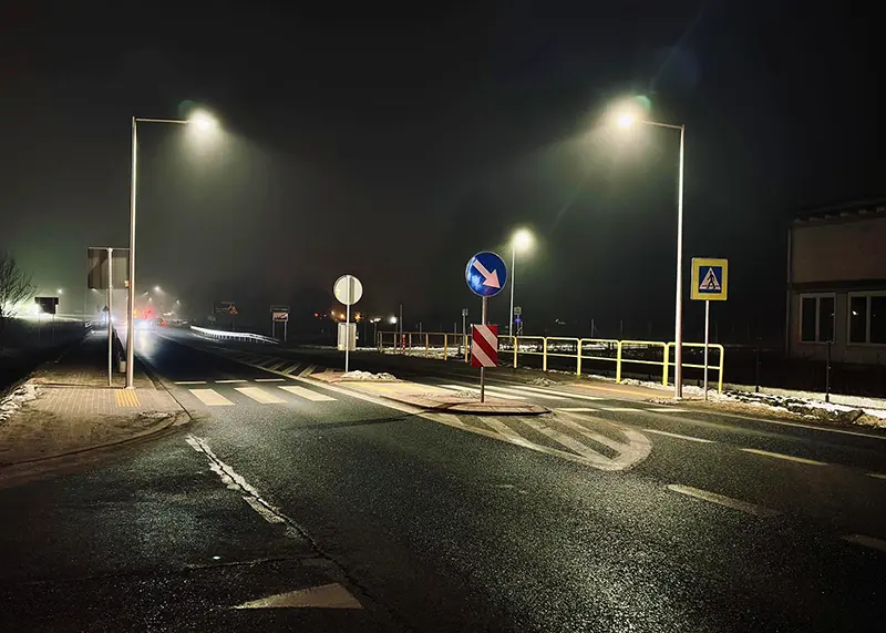W ramach inwestycji powstał nowy fragment chodnika z barierkami, które porządkują ruch pieszych i uniemożliwiają nagłe wejście na jezdnię. Wybudowano azyl dla pieszych na środku drogi, ułatwiający pokonanie jezdni w dwóch etapach. Przejście wyposażono w pełne oznakowanie pionowe i poziome, a także w nowoczesne oprawy LED doświetlające zebrę po zmroku i przy złej pogodzie. Tego typu rozwiązania znacząco poprawiają widoczność pieszego dla kierowcy, a tym samym zmniejszają ryzyko potrąceń.