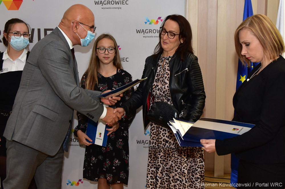 - Jest mi wyjątkowo miło, że miasto Wągrowiec może wspierać Wasze talenty i tworzyć warunki do ich rozwoju. Samorząd to nie tylko budynki, drogi, szkoły, to przede wszystkim ludzie i ich potrzeby. Mam nadzieję, że udział w naszym programie pozwoli Wam dalej rozwijać się, realizować swoje pasje, a przede wszystkim dobrze przygotować się do dalszych etapów edukacji – gratulował stypendystom i nagrodzonym burmistrz Jarosław Berendt, wręczając im pamiątkowe dyplomy, a rodzicom listy gratulacyjne.