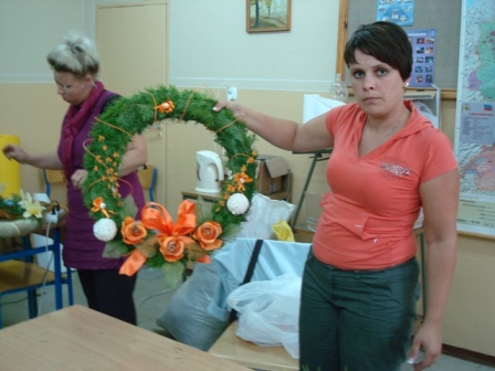 Po technice układania wiązanek, przyszła kolej na zajęcia związane z dekorowaniem stołu, kwiatów doniczkowych, robieniem stroików świątecznych oraz artystycznym pakowaniem prezentów. I w tej materii wszystkie panie wykazały się dużą wyobraźnią artystyczną, zyskując tym samym duże uznanie instruktora oraz organizatorów szkolenia.