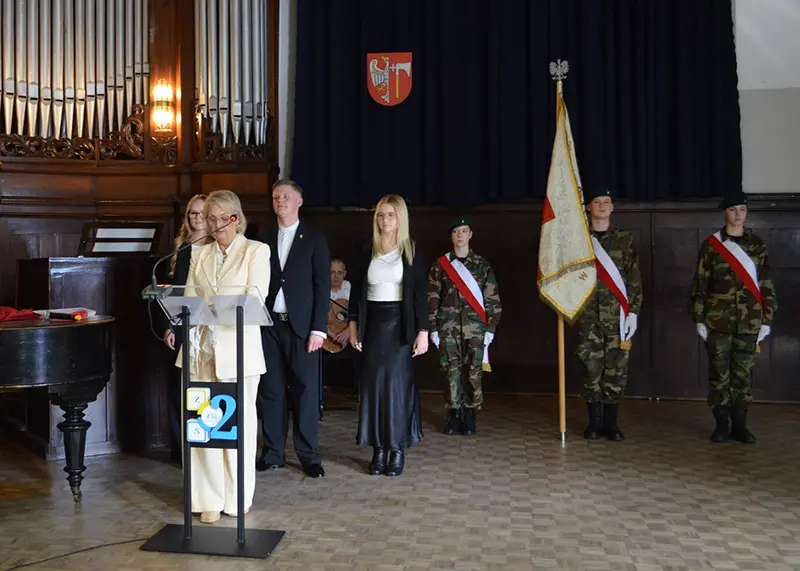 Dyrektor Iwona Muszyńska–Synoradzka w swoim wystąpieniu podkreśliła znaczenie wspólnoty szkolnej, wzajemnego szacunku i misji kształcenia młodzieży. W jej słowach wybrzmiała wdzięczność wobec wszystkich, którzy codziennie tworzą przestrzeń rozwoju i wzajemnego wsparcia.