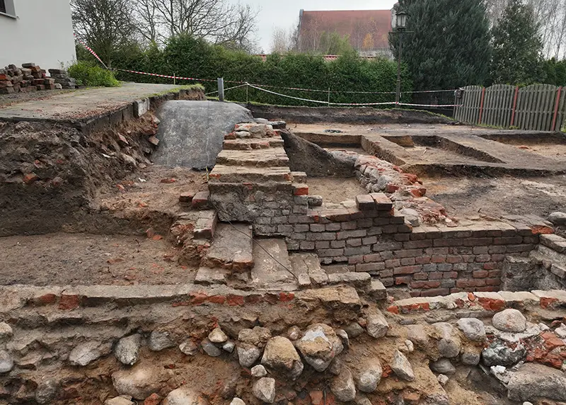 Archeolodzy odsłonili relikty średniowiecznych i nowożytnych murów, a także liczny materiał zabytkowy: fragmenty naczyń ceramicznych, kafli piecowych, kości zwierzęcych oraz monety.