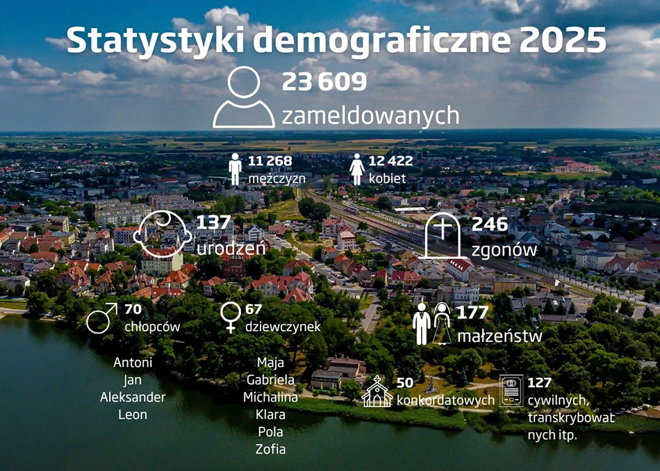 W danych za 2025 rok widać też wyraźny ubytek naturalny. Na pobyt stały zameldowano 137 dzieci urodzonych w tym roku: 67 dziewczynek i 70 chłopców. W tym samym czasie zmarło 246 osób zameldowanych w Wągrowcu. Same te liczby pokazują skalę różnicy między urodzeniami a zgonami, niezależnie od migracji, której w tych zestawieniach nie podano.