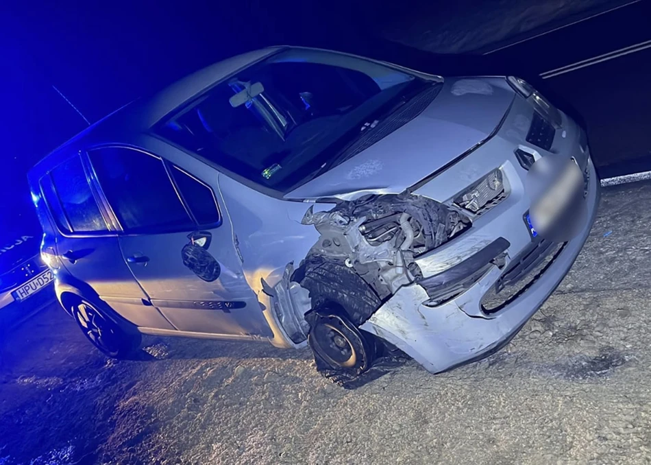 Informacja trafiła do patroli. Funkcjonariusze z Ogniwa Patrolowo-Interwencyjnego zauważyli wskazany samochód w Kaliskach. Auto miało widoczne uszkodzenia: zniszczoną lampę, błotnik i felgę. Policjanci podjęli próbę zatrzymania, jednak kierowca nie reagował i kontynuował jazdę w stronę Kcyni.