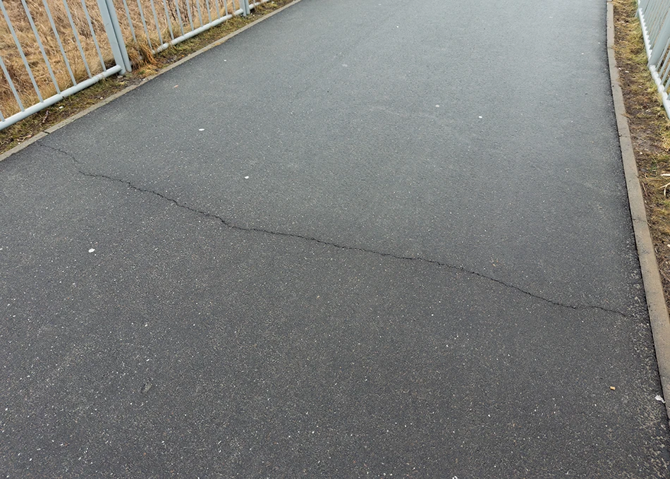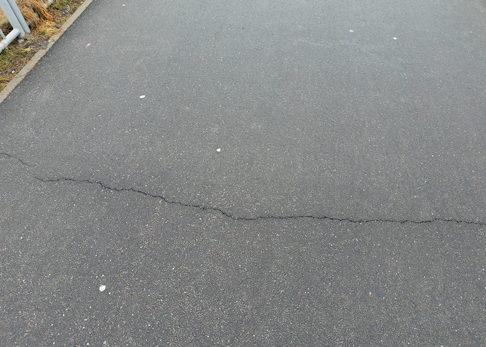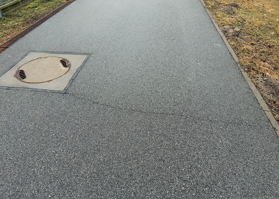 Tyle że dziś, niespełna trzy lata po otwarciu — nawierzchnia zaczyna pękać. Na razie nie są to ubytki, które unieruchamiają trasę, ale pęknięcia to zwykle pierwszy sygnał, że coś pracuje nie tak, jak powinno.