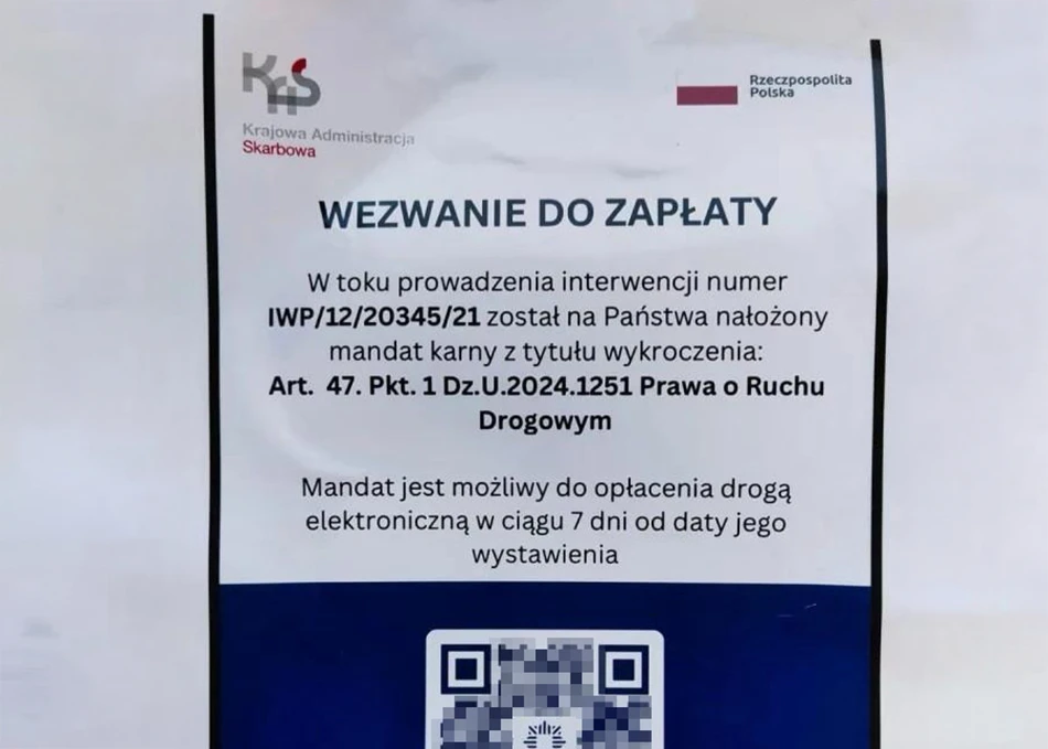 Na ulotkach znajduje się logo KAS oraz kod QR, który ma rzekomo prowadzić do informacji o mandacie. W rzeczywistości może być narzędziem do wyłudzenia danych albo zainfekowania telefonu.