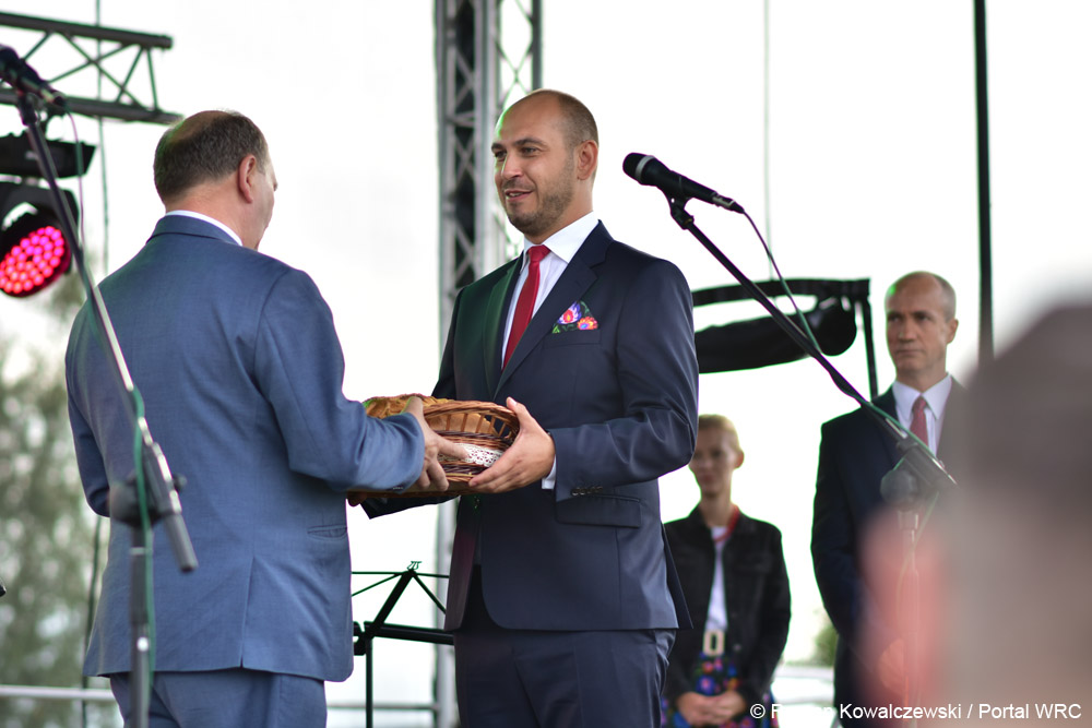 Po mszy korowód dożynkowy przemaszerował na stadion, gdzie rozpoczęły się obrzędy dożynkowe. Starosta wągrowiecki Tomasz Kranc i wójt Damasławka Cyprian Wieczorek podzielili się chlebem z wszystkimi obecnymi.