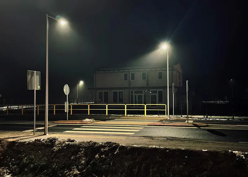 W ramach inwestycji powstał nowy fragment chodnika z barierkami, które porządkują ruch pieszych i uniemożliwiają nagłe wejście na jezdnię. Wybudowano azyl dla pieszych na środku drogi, ułatwiający pokonanie jezdni w dwóch etapach. Przejście wyposażono w pełne oznakowanie pionowe i poziome, a także w nowoczesne oprawy LED doświetlające zebrę po zmroku i przy złej pogodzie. Tego typu rozwiązania znacząco poprawiają widoczność pieszego dla kierowcy, a tym samym zmniejszają ryzyko potrąceń.