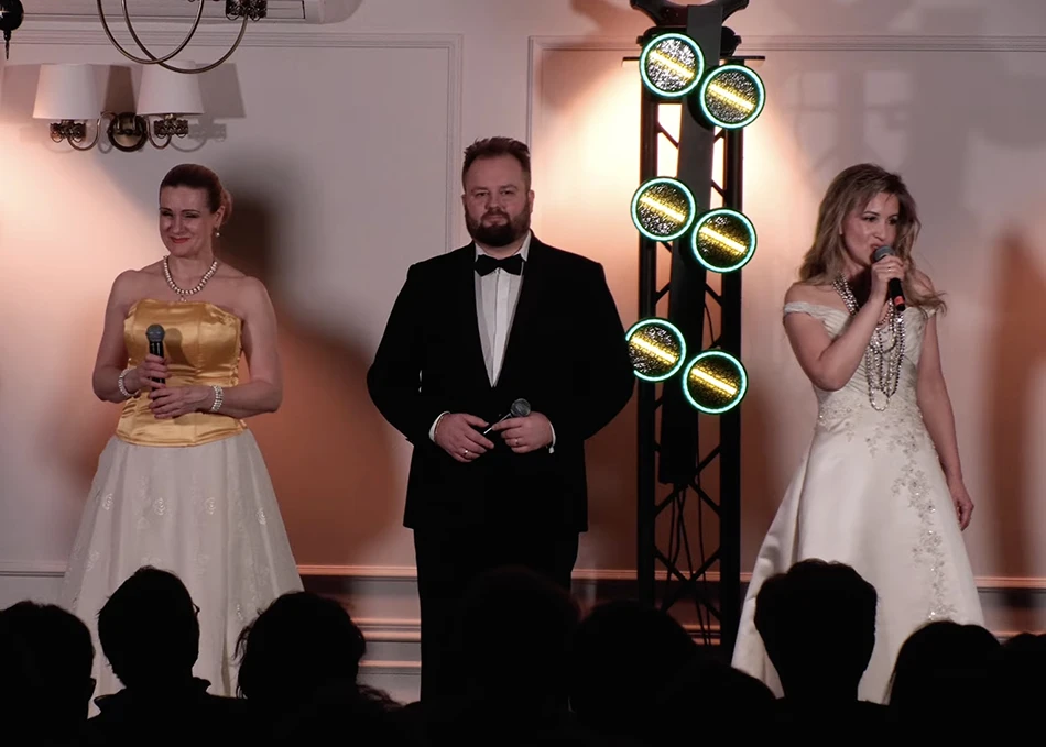 Po przemówieniach i życzeniach sala dostała to, na co czekała. Koncert poprowadził Bartosz Kuczyk, tenor i konferansjer, który konsekwentnie trzymał rytm wieczoru: trochę operetki, trochę światowych przebojów i sporo ciekawostek. Na scenie pojawiły się nowe twarze dla skockiej publiczności, w tym Aleksandra Janiszewska oraz Paulina Kostrzewska grająca na harfie elektrycznej. Kostrzewska, związana z Teatrem Wielkim im. Stanisława Moniuszki w Poznaniu, mówiła, że Skoki są jej bliskie także prywatnie, bo dzieciństwo spędziła nad Jeziorem Włókna.