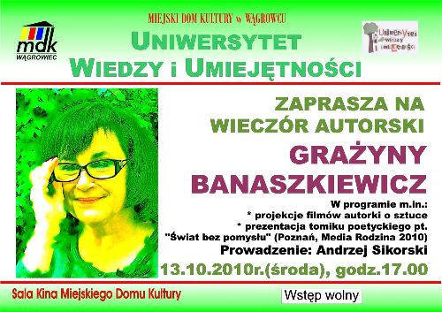Grażyna Banaszkiewicz jest reżyserem telewizyjnych filmów dokumentalnych i programów poetyckich, poetką, dziennikarka.