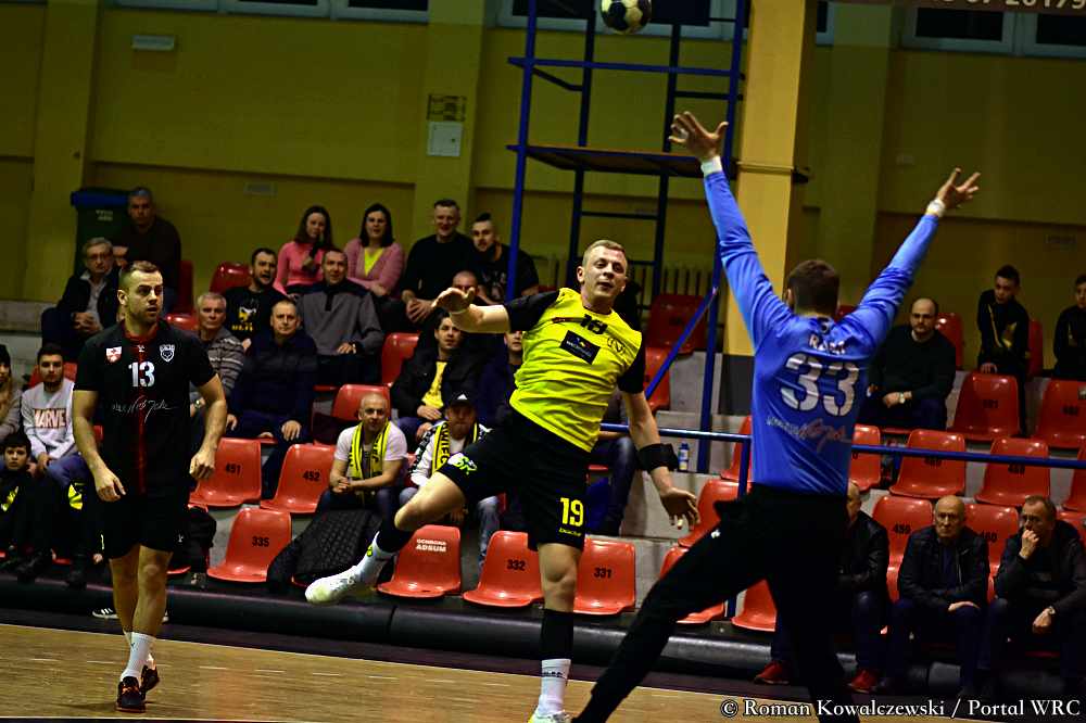 Żołto-czarni pokonali na własnym parkiecie drużynę KS Meble Wójcik Elbląg. Mecz zakończył się wynikiem 38:28 (17:14)