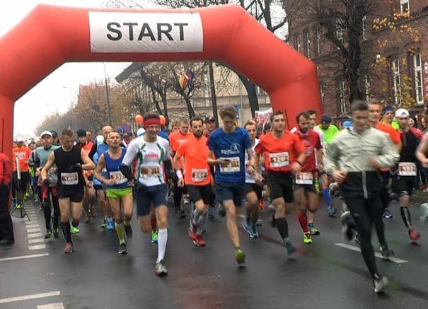 Jesienna szaruga nie odstraszyła biegaczy, którzy tłumnie przybyli do Rogoźna na Pierwszy Półmaraton Przemysła II.