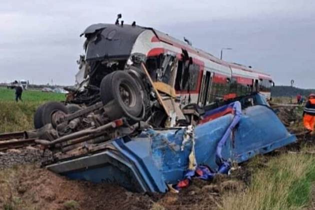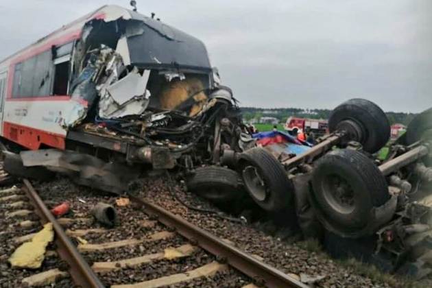 - Przed przejazdem stało po kilka samochodów osobowych z każdej strony. Kierowca ciężarówki ominął jednak te auta i wjechał na przejazd. Obsługa rozpędzonego szynobusu nie miała szans na zatrzymanie - podają policjanci. - Uderzenie było tak silne, że ciężarówka przełamała się na pół. W pociągu jechało 15 osób wraz z obsługą. Nikt nie zginął, ale są ranni. Będziemy domagać się aresztu dla kierowcy ciężarówki. Złamał wszystkie zasady bezpieczeństwa i to w sposób rażący. - dodają policjanci.