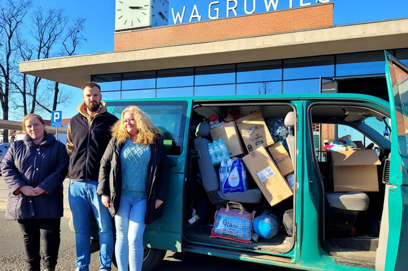 Miejsko-Gminny Ośrodek Kultury w Margoninie wysłał dzisiaj autobus po uchodźców. Autobus został załadowany darami dla Ukrainy. Wśród darów znajdują się również te zebrane w Wągrowcu.