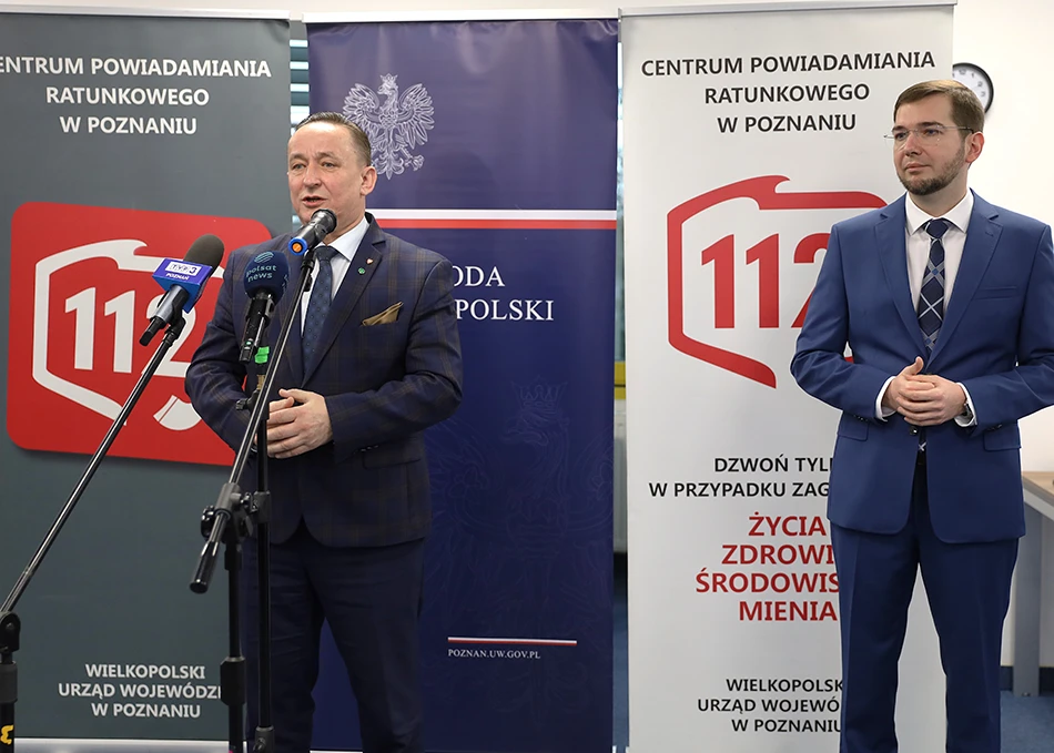 Podczas briefingu prasowego o kulisach działania systemu mówili II wicewojewoda wielkopolski Jarosław Maciejewski oraz kierownik CPR w Poznaniu Jarosław Teśluk.